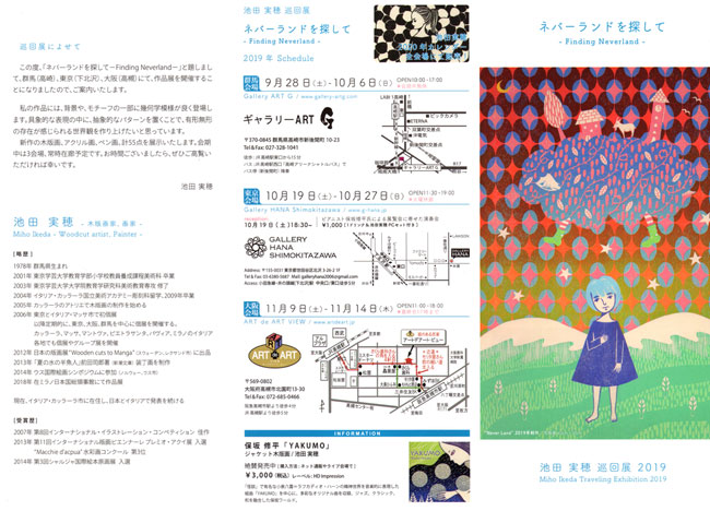 池田 実穂 巡回展 2019 ☆ ネバーランドを探して - Finding Neverland - 2019年11月9日(土)~ 11月14日(木) 11:00 - 18:00 <最終日17:00まで・期間中無休>