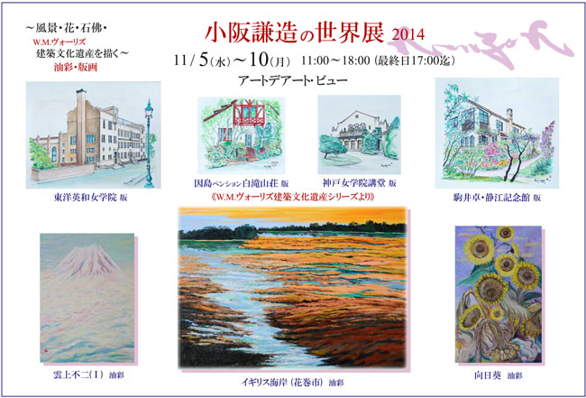小阪謙造の世界展 2014 ~風景・花・石佛・W.M.ヴォーリズ 建築文化遺産を描く~ 油彩・版画 2014年11月5日(水)~ 11月10日(月) open 11:00 - 18:00 <最終日17:00まで>