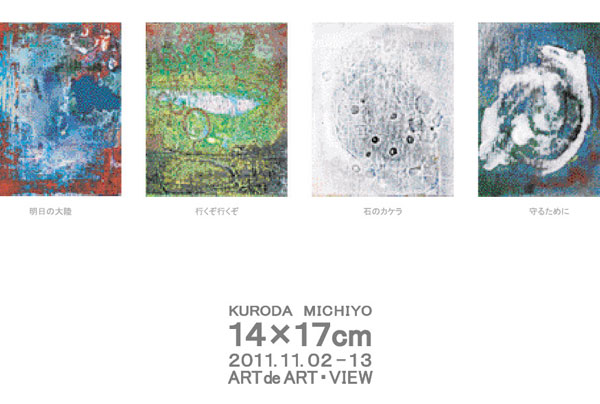 黒田倫代「14×17cm」 KURODA MICHIYO 14×17cm ~縦17cm横14cmのパネルを約100点展示します ~ 2011年11月2日(水)~11月13日(日) open 11:00~18:00 (最終日17:00迄 8日(火)休廊)