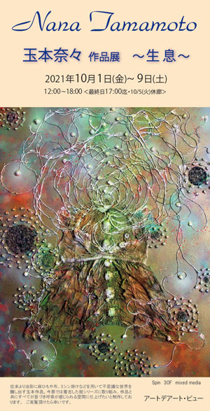 玉本奈々 作品展 ☆ ~ 生 息 ~ 2021年10月1日(金)~9日(土) 12:00~18:00 <最終日17:00まで・10/5(火)休廊> 作家在廊予定: 10/1 12:00~15:00/10/3・10/6・10/7 12:00~18:00 ・他の日は、お問合せください