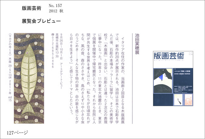 ☆版画芸術 No.157 2012 秋号「展覧会プレビュー」 にて取り上げていただきました